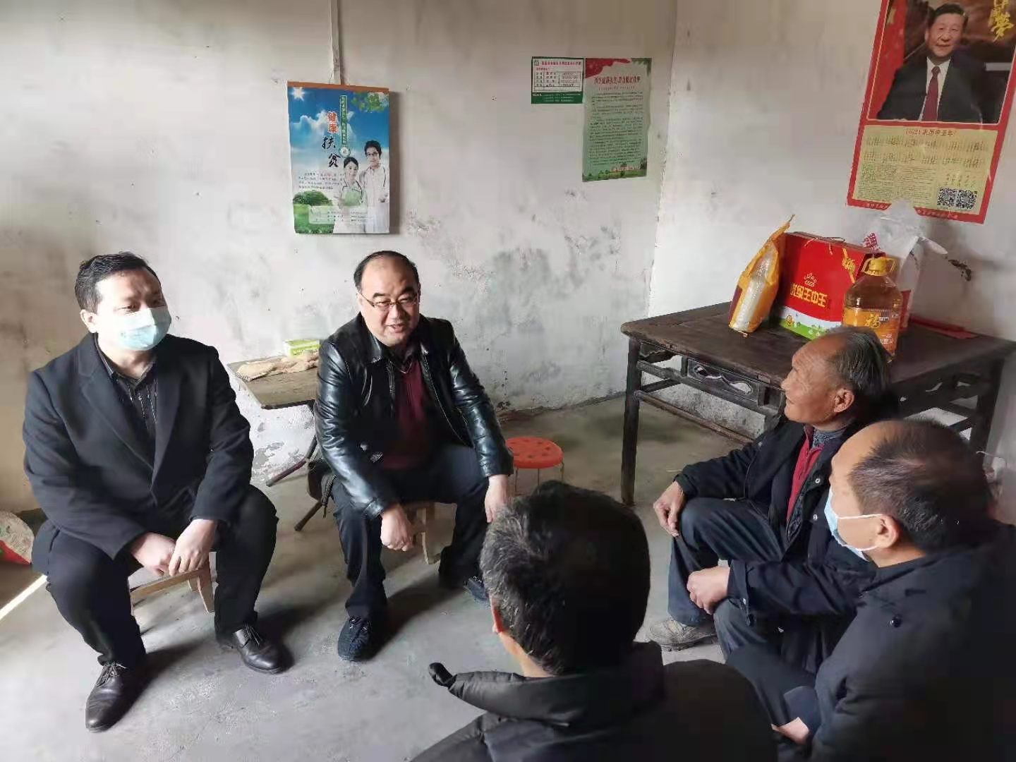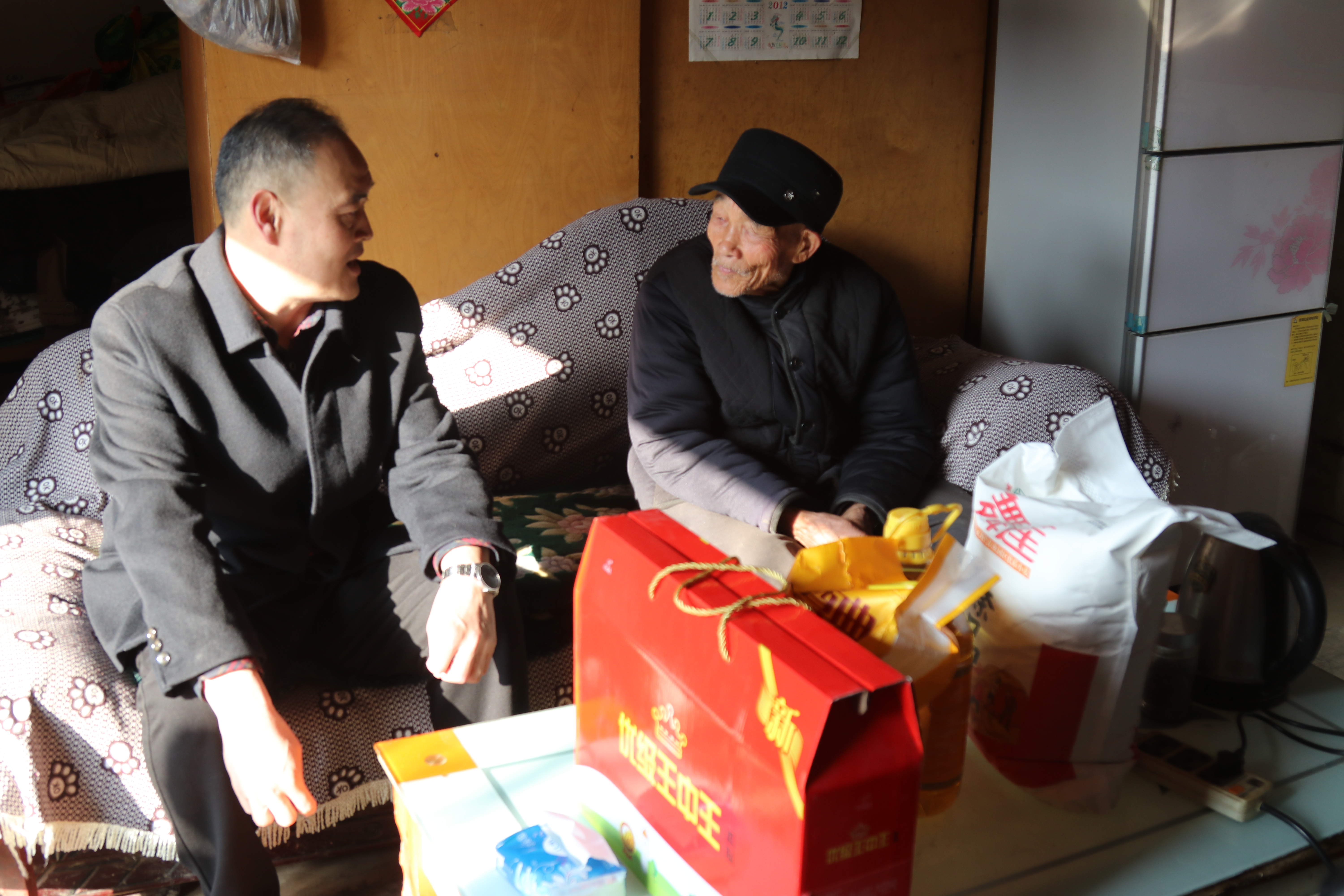 在驻村第一书记朱献周的陪同下,易春林走进大赵村村民赵义邦家中,关切询问他的身体健康和生活情况,并送上了食用油、大米和面粉等慰问品,叮嘱他一定要注意身体,过一个祥和平安的春节。