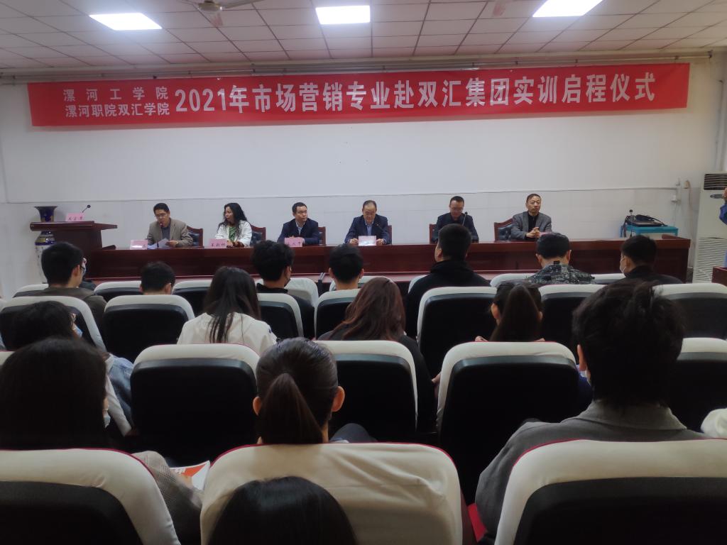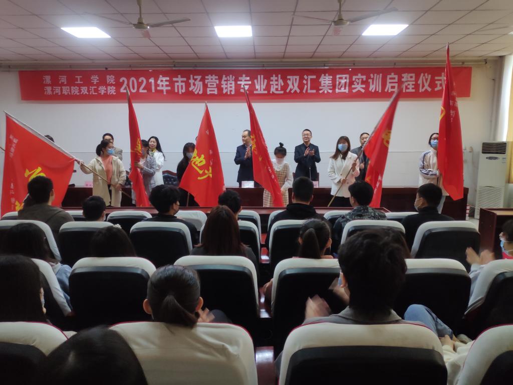 4月15日,河南工业大学漯河工学院双汇学院隆重举行2018级市场营销本科专业师生赴双汇集团实训启程仪式。校党委副书记薛存心,双汇集团人力资源中心副主任、校园招聘总监潘硕,双汇集团肉制品事业部综合部副部长宋丛干及校企有关部门领导出席仪式。双汇学院党总支书记张改亮主持启程仪式。