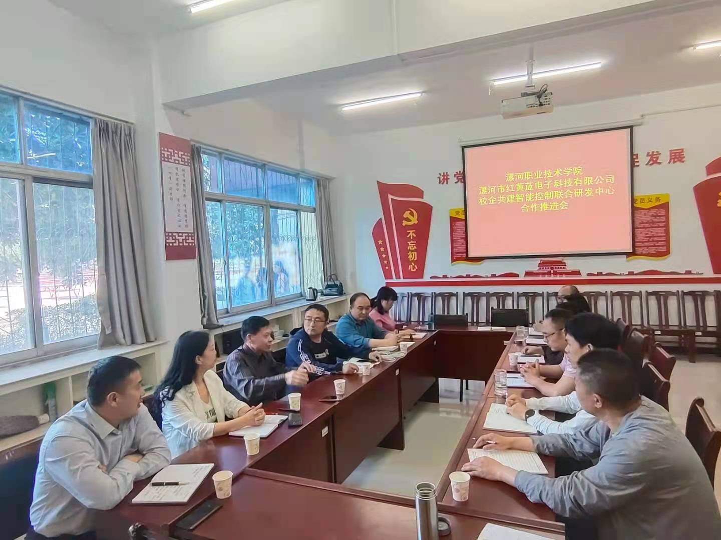 王变奇指出,漯河市红黄蓝电子科技有限公司是漯河市本土优秀企业,与我校机电工程系、电气电子工程系专业契合度高,双方有很好的合作基础。他希望,充分发挥学校在科学研究、技术研发方面的优势,强化学校与企业之间的产学研合作,通过校企共建,加快推进智能控制联合研发中心建设,实现校企优势互补、共同成长,建设创新型学校。