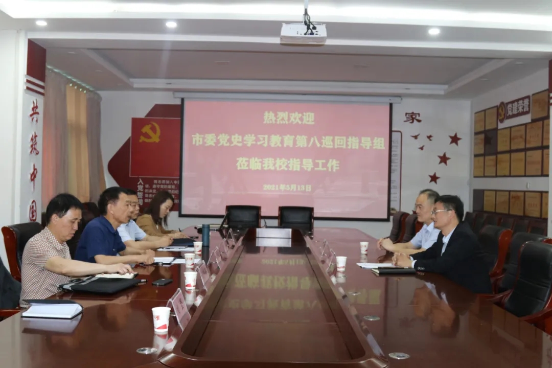 5月13日下午,市委党史学习教育第八巡回指导组副组长陈荣山一行5人到248cc永利集团指导党史学习教育工作。校党委副书记薛存心,校党委委员、组宣部部长缪俊岭出席汇报会。