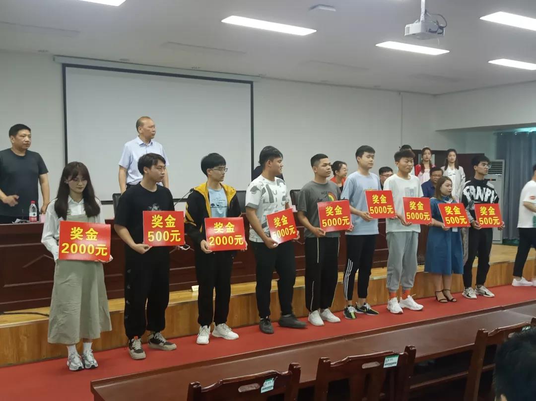 与会领导给2020年度省市大赛获奖同学颁发奖金