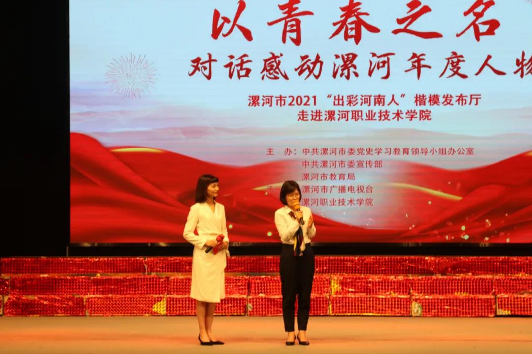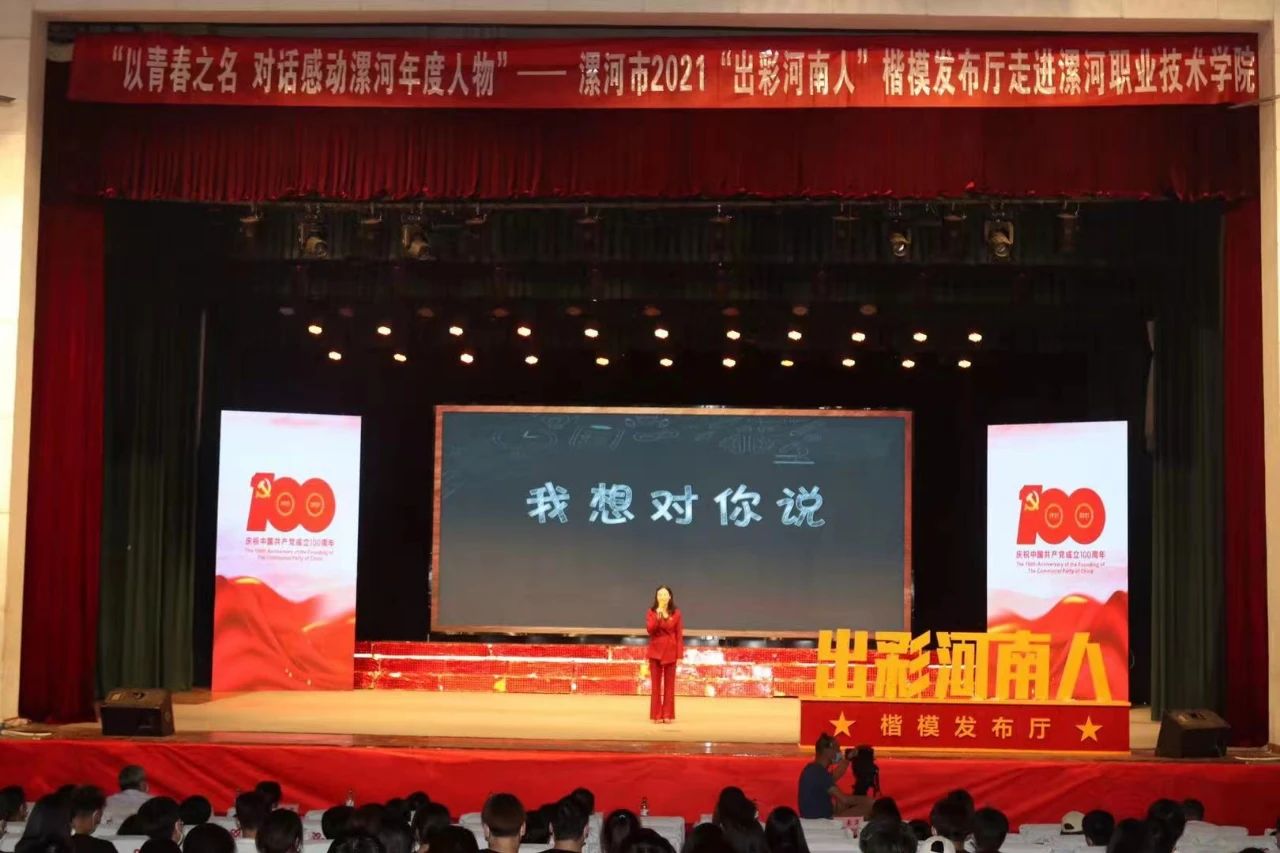 本次活动以漯河市“出彩河南人”楷模先进代表与青年学生互动交流、思政课教师点评等多种形式,通过线上直播和现场展演相结合,为师生带来一堂主题鲜明、形式新颖、内容丰富、互动性强的思政课,与青年学子一起对话青春梦想,引导青年学生从党的伟大历程中领会真理力量,从典型人物身上感受道德风范,激励学生学习楷模事迹、感受榜样力量,坚定理想信念、厚植爱国情怀。
