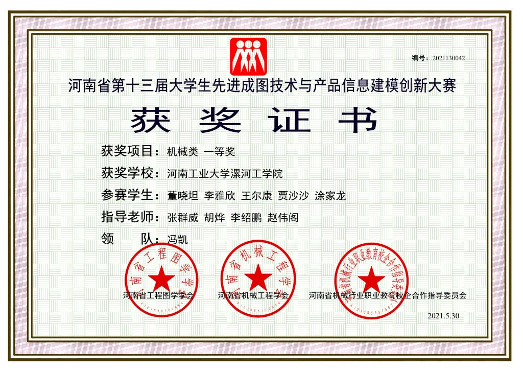 日前,由河南省机械工程学会、河南省工程图学学会和河南省机械行业职业教育校企合作指导委员会联合主办的河南省第十三届“高教杯”大学生先进成图技术与产品信息建模创新大赛(暨“全国大学生先进成图技术与产品信息建模创新大赛”预赛)落下帷幕。经过激烈角逐,河南工业大学漯河工学院机电工程系董晓坦、李雅欣等同学组成的代表队在李绍鹏、张群威等教师的指导下,经过近8个月的刻苦训练,最终荣获机械类团体一等奖、二等奖各1项,个人二等奖4项,个人三等奖11项的骄人成绩,同时,代表队顺利取得了7月份参加国赛的入场券,创下参赛以来最好成绩。