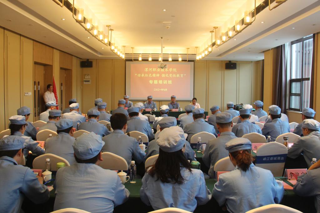 为认真学习贯彻习近平总书记“七一”重要讲话精神,推动学校党史学习教育走深走实,7月12日-20日,漯河职院利用暑期举办“传承红色精神 强化党性教育”专题培训班,组织副科级以上党员干部进行集中培训学习,进一步加强学校党员干部队伍建设,提升党员干部思想政治素质和办学治校能力,推动学校各项事业高质量发展和可持续发展。专题培训班开班仪式在安徽金寨举行。校党委书记顾文明作重要讲话并为培训班授旗,党委副书记、校长王春阳主持。