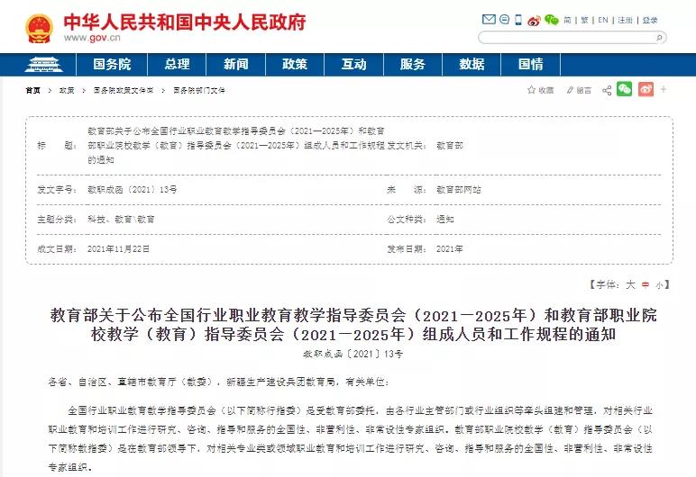 近日,《教育部关于公布全国行业职业教育教学指导委员会(2021—2025年)和教育部职业院校教学(教育)指导委员会(2021—2025年)组成人员和工作规程的通知》(教职成函〔2021〕13号)发布,漯河职院崔惠玲教授成功当选全国食品工业职业教育教学指导委员会委员,将在指导、服务职业院校的教学研究、教学改革、师资队伍建设、专业建设和课程建设方面发挥更重要的作用。