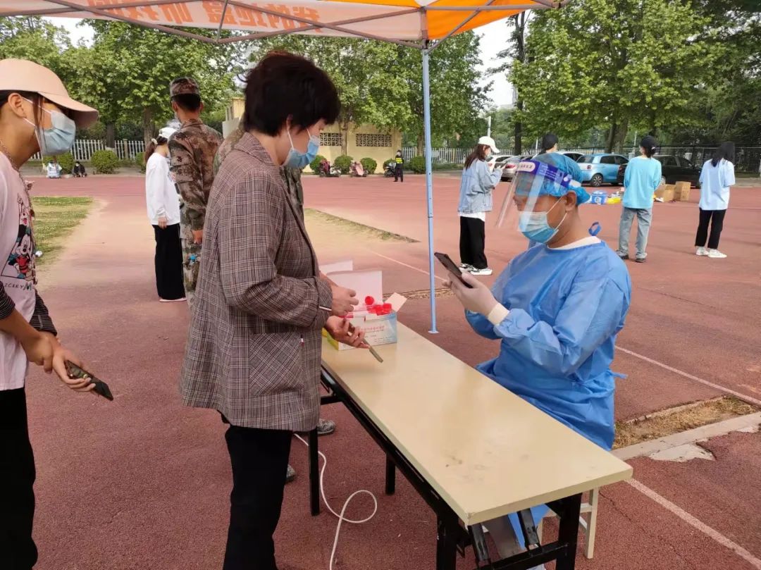 全员核酸检测从上午7:30一直持续到11:00,长达三个半小时。党员教师志愿者们严谨认真地为每一名参与检测的教师、学生、后勤人员做好核酸检测服务工作。到脱下防护服的时候,防护面罩在脸上留下一道道勒痕。通过大家的齐心努力,圆满地完成了每一次核酸检测志愿服务工作,进一步筑牢了学校疫情防控安全防线。