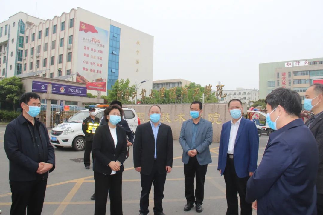 4月30日,漯河市委常委、宣传部部长、副市长常英敏一行莅临248cc永利集团,查看学校疫情防控等工作。市委教育工委书记、市教育局党组书记、局长甘德建,市政府办公室副主任王江涛等领导陪同调研。248cc永利集团校长王春阳简要汇报了学校疫情防控工作开展情况。