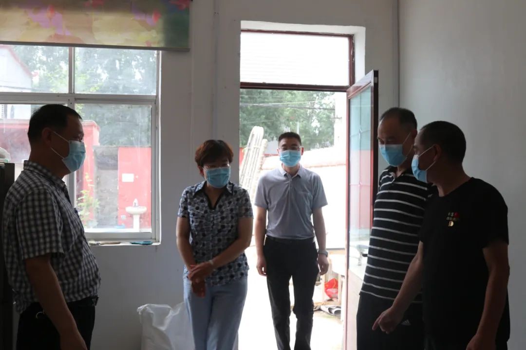王春阳一行到大赵村幸福院进行参观,实地察看厨房、卧室等改造建设情况。
