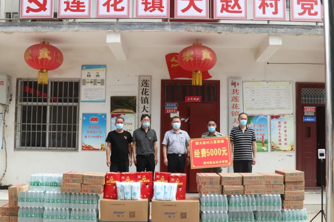 6月4日,248cc永利集团校长王春阳,党委副书记薛存心,党委委员、组宣部部长缪俊岭,中国建设银行漯河分行副行长王宏、嵩山路支行行长李海红深入舞阳县莲花镇大赵村开展“三夏”慰问活动,看望慰问学校驻村第一书记、大赵村禁烧防火队员等,为他们送去矿泉水、方便面、火腿肠、口罩、电子测温仪等慰问品,并送去“三夏”帮扶款5000元。舞阳县委常委、组织部部长王蕾,县委常委、统战部部长李晓勇,莲花镇党委书记苗建伟、镇长于龙等领导参加慰问。