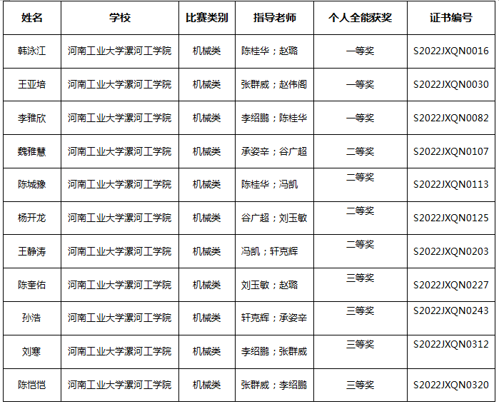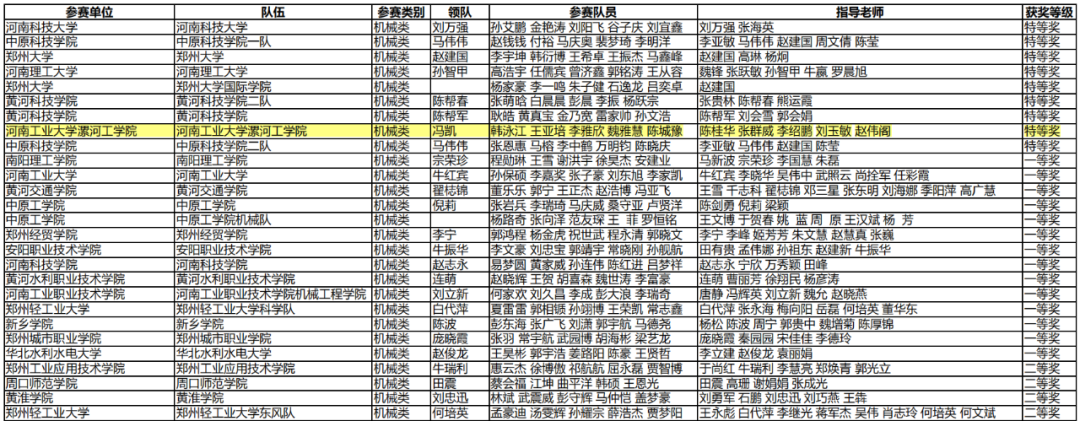 漯河工学院高度重视此次比赛,选派专业知识强、经验丰富的指导老师,组建备赛队伍,克服疫情的困难,历经3次选拔赛,最终选定机电工程系韩泳江、王亚培、李雅欣等12名同学代表学校参赛,在各位指导老师的悉心指导和学生们的不懈努力下,最终获得优异成绩。通过与河南省各大高校学生同台竞技,参赛师生获得了宝贵的交流、学习、提升的机会,为日后教师教学工作与学生学习奠定了良好的基础。