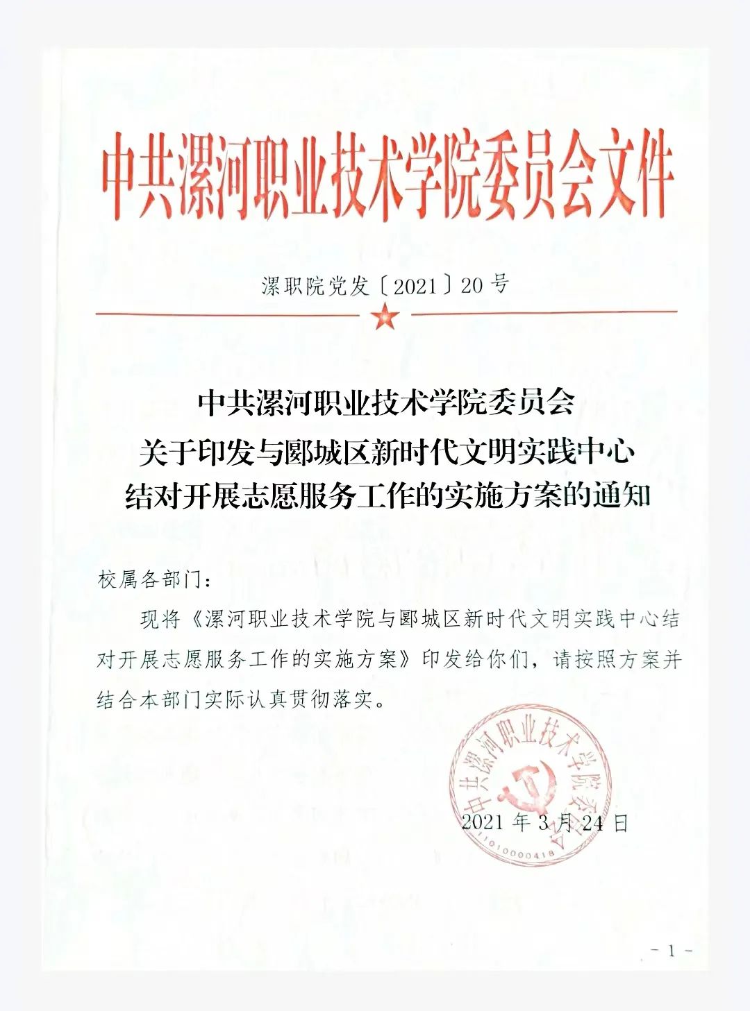 按照河南省文明办、省教育厅和团省委印发的《关于高校与新时代文明实践中心结对开展志愿服务工作方案》的要求,漯河职院极与郾城区新时代文明实践中心结对子,发挥专业优势,积极开展了志愿支教服务活动。